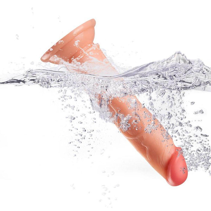 Prótese realística em formato de pênis confeccionado em TPE possui glande definida,textura de veias, com ventosa para penetrações em ângulo reto.